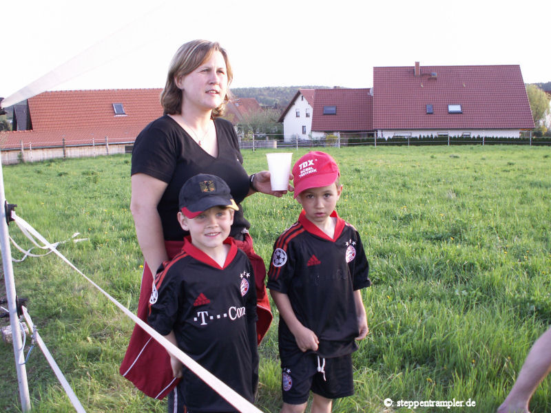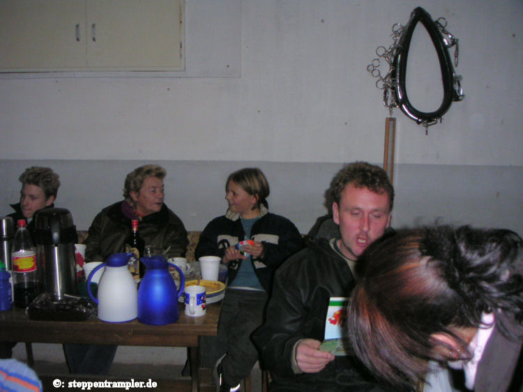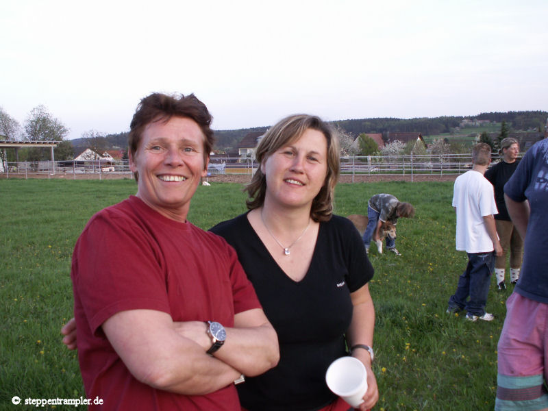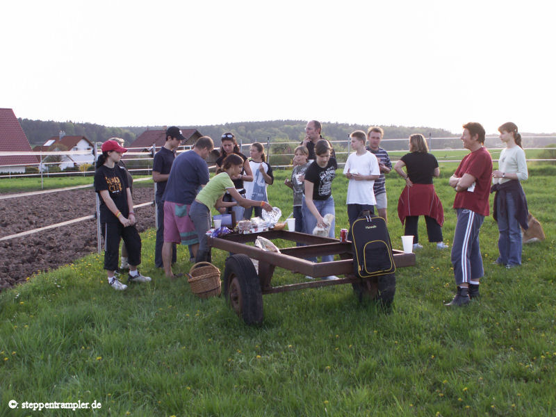 Einmal im Jahr lädt der Chef zum Stallfest, manchmal auch mit kleinem Parcours und Urkunde, immer aber mit gutem Essen und Trinken und nächtlichem Feuer (siehe auch Kinderseite für weitere Bilder). Bei guter Sicht und richtigem Wind sieht man sogar die Abwärme des 50 km entfernten Kernkraftwerks Grafenrheinfeld