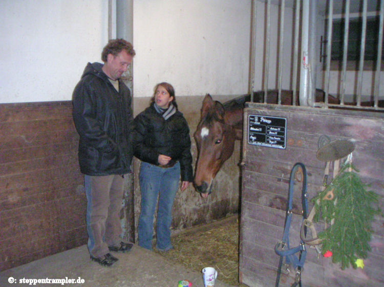 Und besonders schön die Weihnachtsfeier 2006, wieder mit geschmückten Boxen, besonders hergerichteten Pferden, vielen Geschenken und dem stalleigenen reitenden Nikolaus |