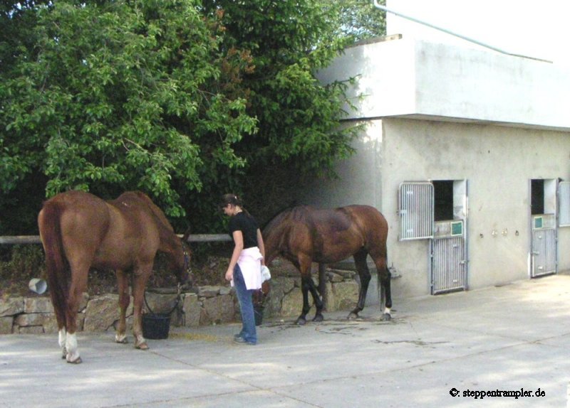 Vor dem Eingang zum Stall, der große Wasch-, Sattel- und Arbeitsplatz, der von jedem benutzt werden kann, und der von den Benutzern selbst gereinigt wird. Einige Bilder, um sich selbst einen Eindruck zu verschaffen |