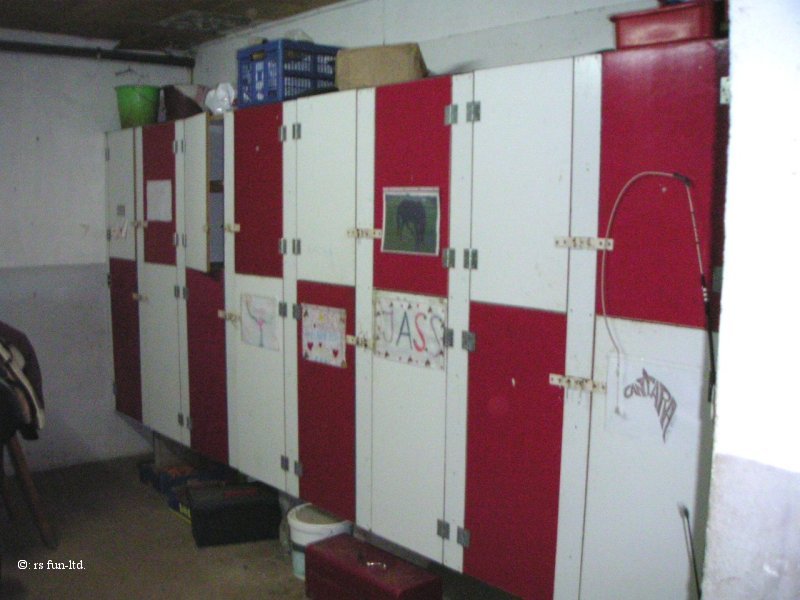 Jeder Pferdebesitzer hat einen eigenen Spind und einen Platz für den/die Sattel oder Sättel und das Zubehör |